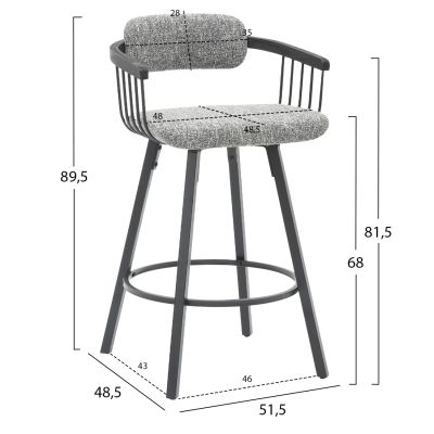 БАР СТОЛ С ОБЛЕГАЛКА PLERED HM6129 ТИКОВО ДЪРВО И ВИРО ВЪЖЕ 40x45x100Hcm.