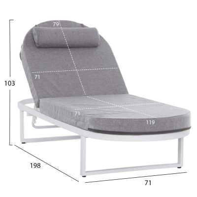 АЛУМИНИЕВ ШЕЗЛОНГ С ОБЛЕГАЛКА ЗА ГЛАВА RABIA HM5982.01 В БЯЛО 191,5x60x89,5Hcm.