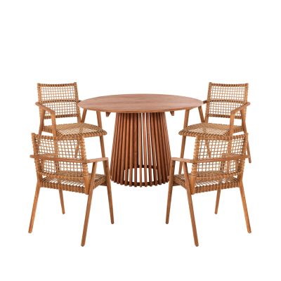 ТРАПЕЗЕН КОМПЛЕКТ 5БР. HM11972 МАСА DENTY & 4 СТОЛОВА VELP (ДЪБ-СИВ)