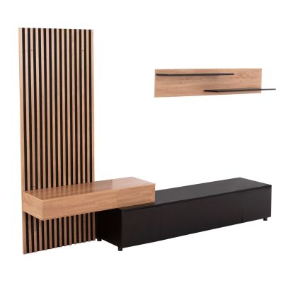 КОМПЛЕКТ МЕБЕЛИ ЗА ТВ HM9438.02 МЕЛАМИН В ЦВЯТ ОРЕХ-БЯЛО 180x35x40Hcm.