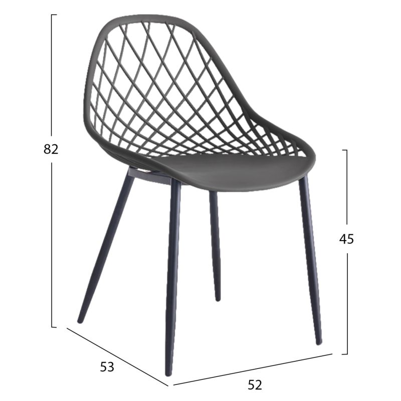 2 polypropylene chairs with metal legs. Black colour. Dimensions: 52x53x82H cm.