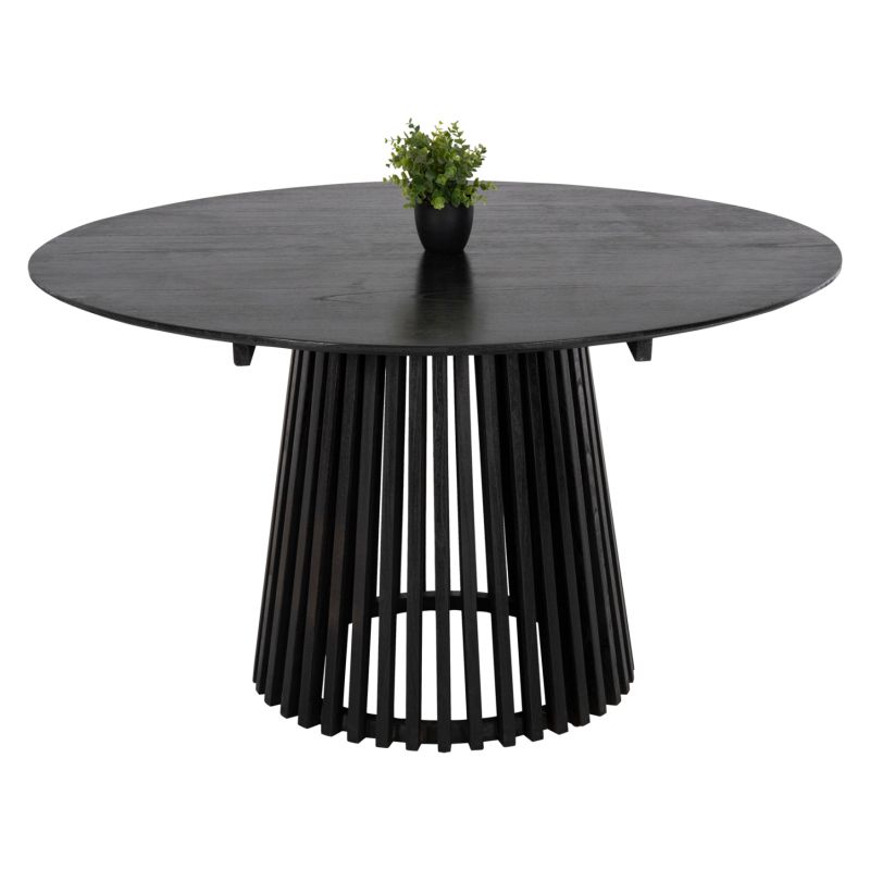 FRANTZ is a round dining table with large dimensions in BLACK color. The tabletop rests on a wooden structure in the center with several beams in a circular-coned arrangement joined together by internal wooden rings. This table will aesthetically upgrade your kitchen or dining room while it can match many different styles and colors in the surrounding space. You can even choose from a wide range of different chairs to match with this table.