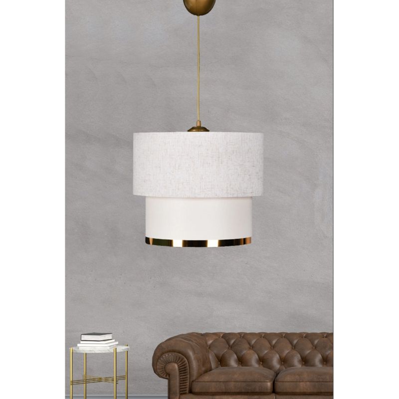 Φωτιστικό οροφής, σε λευκή απόχρωση με μπρονζέ λεπτομέρειες.