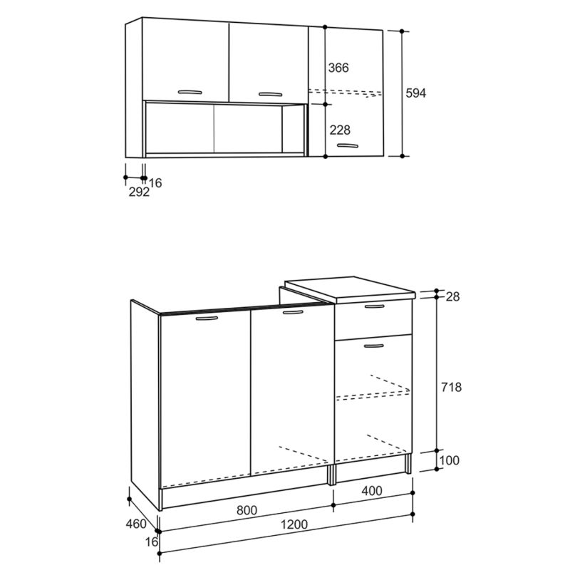 If you are looking for an economical solution, in a small, straight kitchen, made of high quality melamine, 16mm thick, with open and closed storage spaces, cupboards, drawer, in which you can store all kinds of dishes, cutlery and kitchen utensils, then you have find the right product.