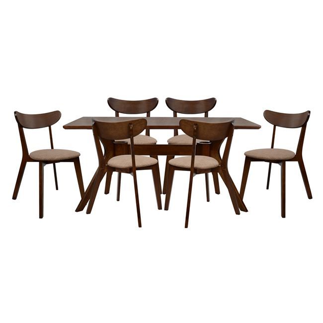 Home Indoor Dinning sets Set Dining Table 7 pieces Walnut Table & Roselyn Chairs HM10068
