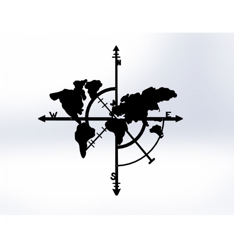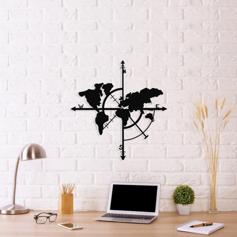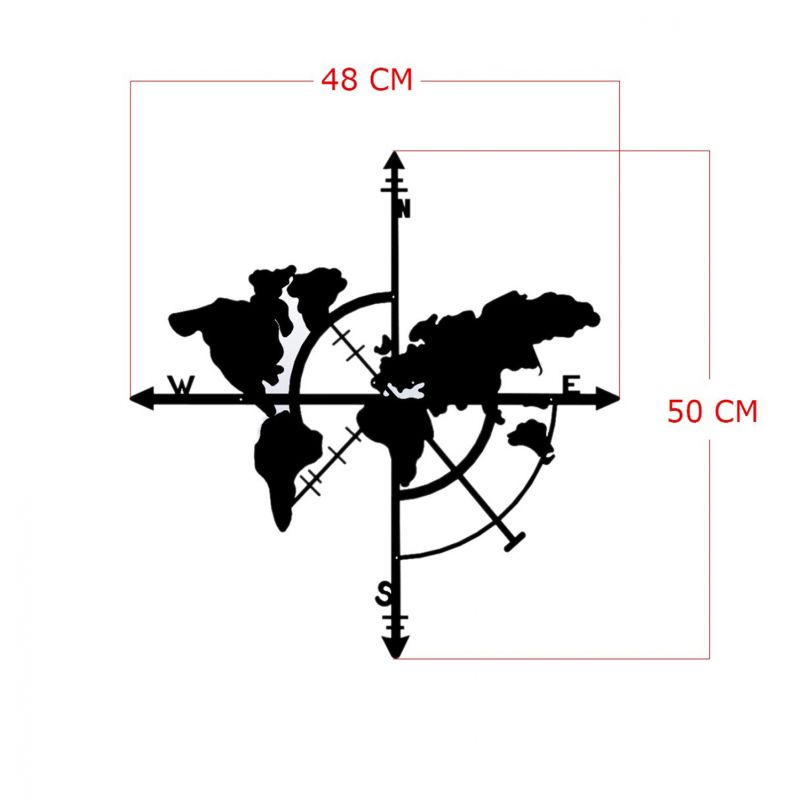 WALL DECORATION 100% METALLIC BLACK WOLD MAP 48X50 HM7214