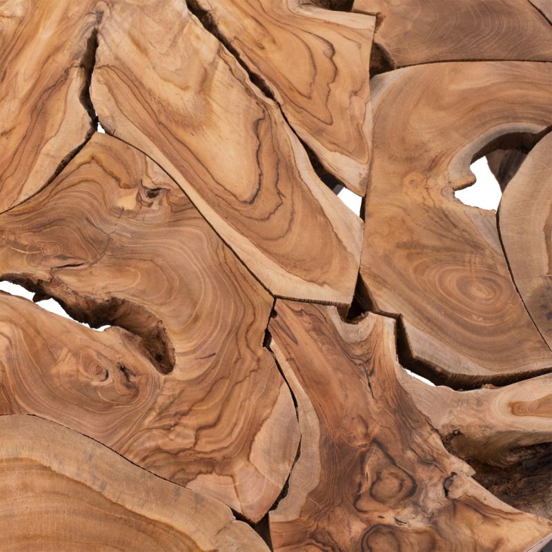 This table is made of solid TEAK wood. When we refer to solid wood, we mean wood made entirely from the trunk of a tree. Solid wood is the most expensive choice in terms of wood but stands out for its timeless aesthetics.