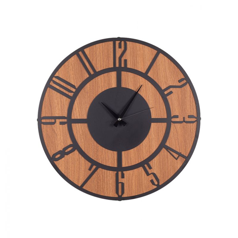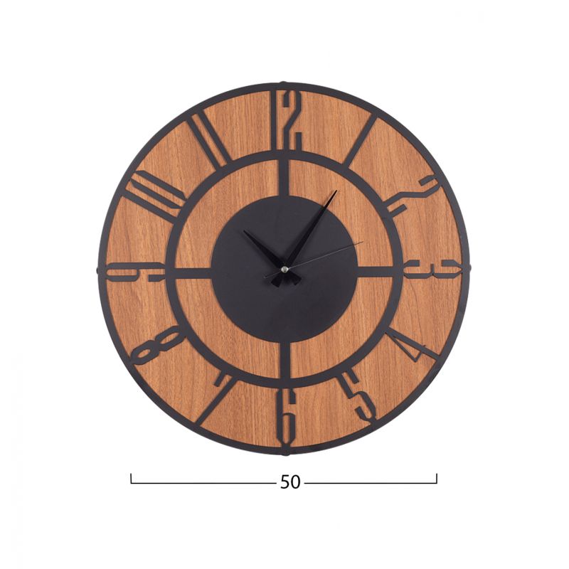 METAL MDF WALL CLOCK BLACK - WALNUT HM7444 Φ50 cm.