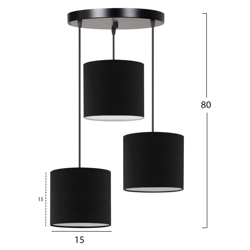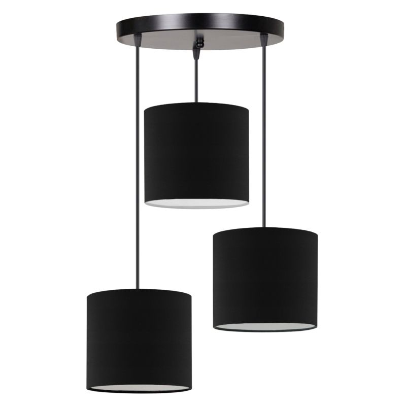 Whether it is day or night, whether it is on or off, this hanging chandelier with 3 plastic "drums" lined with fabric, in an asymmetrical layout, offers your space an instant stylistic upgrade. Just when you thought our love and yours for anything fabric could not reach new frontiers, along came these chandeliers. The texture of the fabric may be a bit unusual for a pendant lamp, but thanks to its white inner surface, it gives the light a soft glow. The black "drum" really gives the impression of luxury without limit.