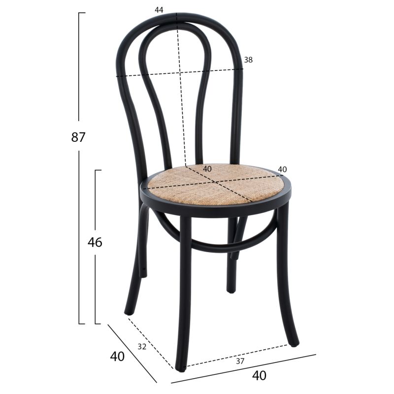Καρέκλα, τύπου Βιέννης , σε μαύρη απόχρωση 40x40x87 εκ.