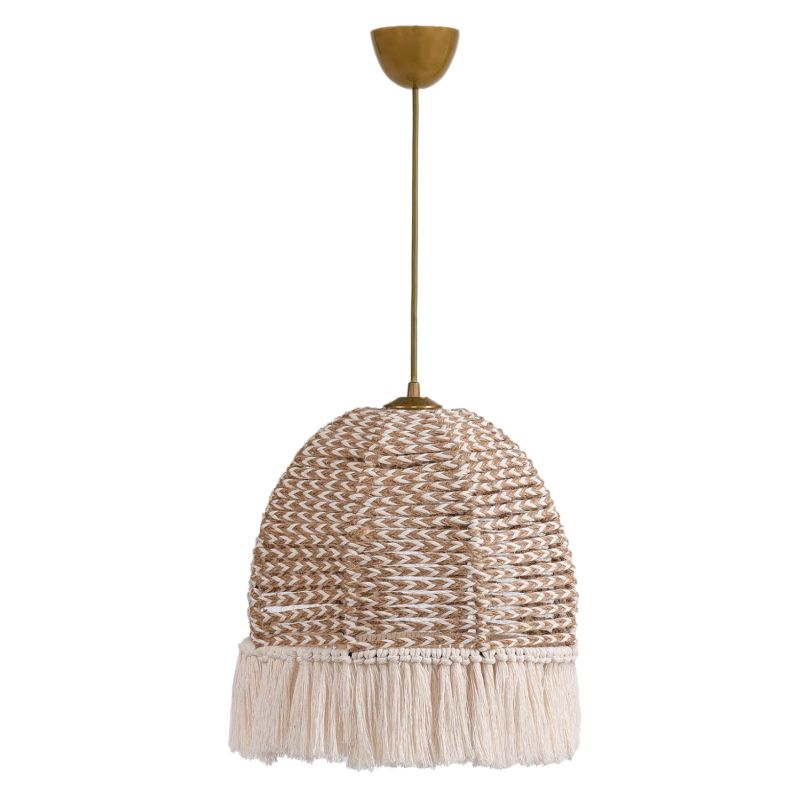 The aesthetic superiority of this luminaire will make it stand out in your space. In addition to various rooms of your house, it is also suitable for business premises such as restaurants, cafes, hotels, etc. The BEIGE color in combination with the ECRU fringes, captures the eye and can instantly change your mood. The light diffuses amazingly into your space through the weave of the “cap” and is directed mainly downwards. At the same time, it can be combined with many other materials and designs to fully highlight the aesthetic virtues of the lamp, since rope is ideal for composing elegant living spaces, with infinite combinations with unusual touches.