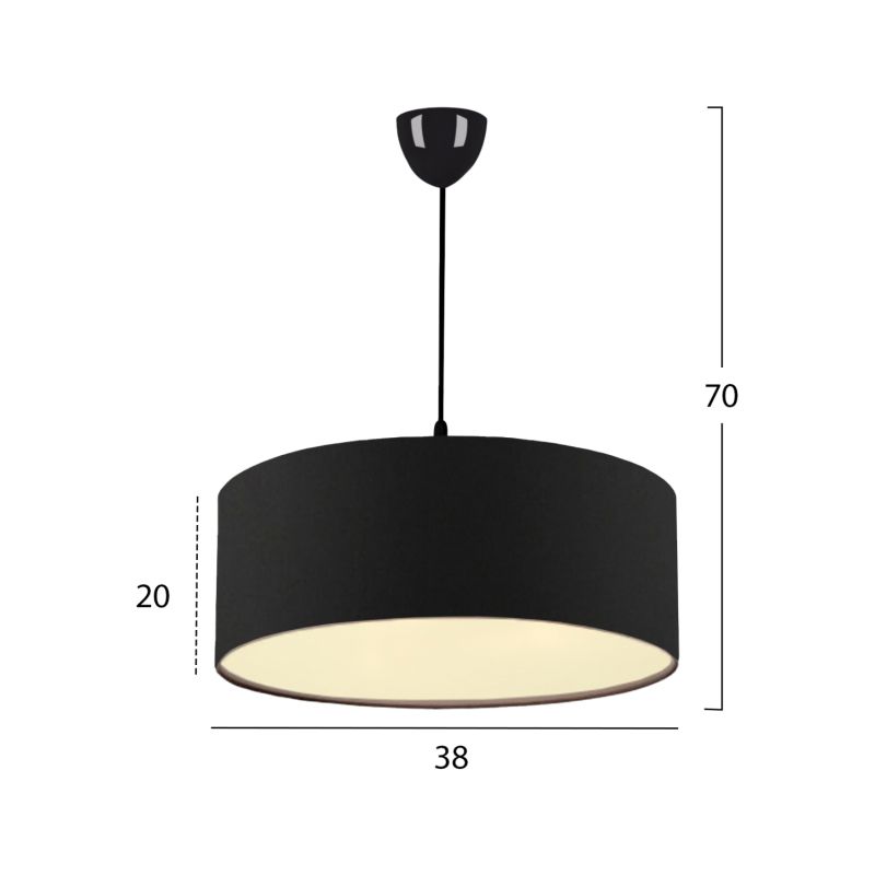 PENDANT CEILING LAMP HM7620.03 BLACK TEXTILE DRUM SHADE