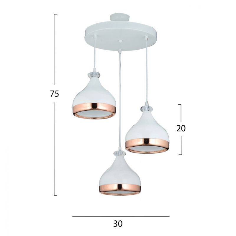 Φωτιστικό οροφής, σε λευκή απόχρωση με ρόζ χρυσές λεπτομέρειες.