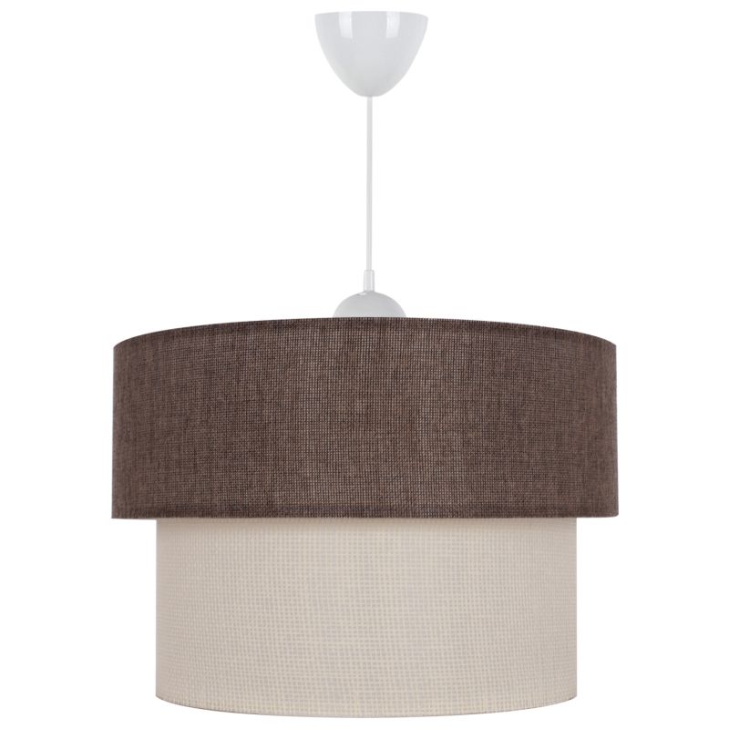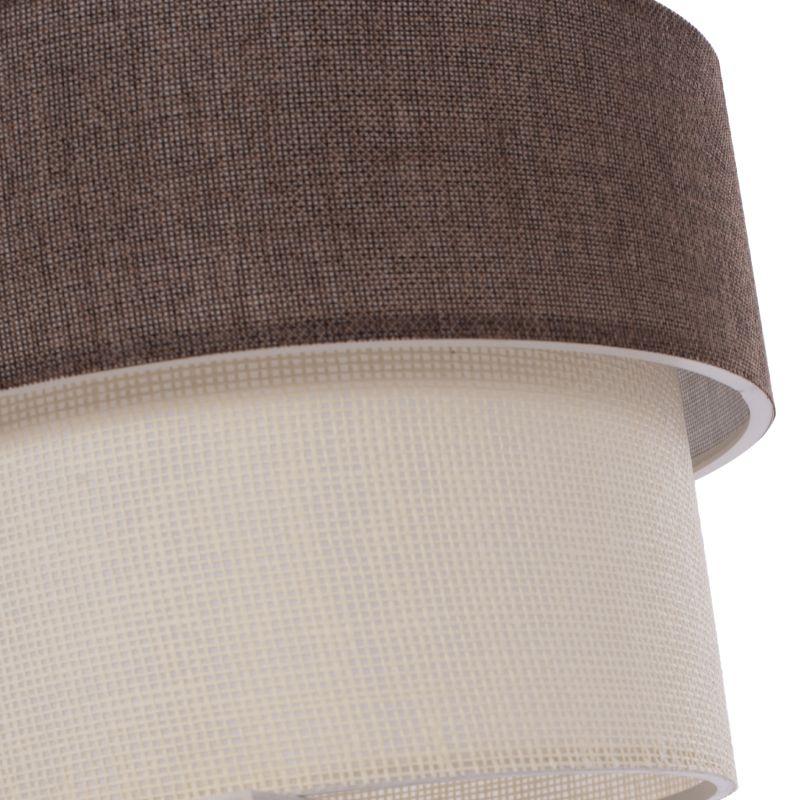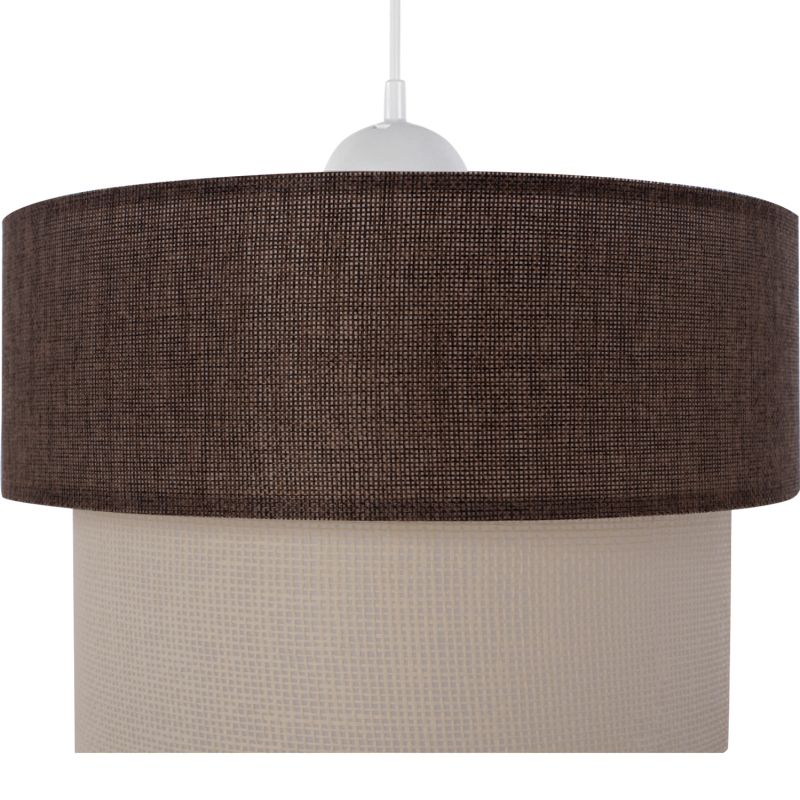 ADVANTAGES: The aesthetic superiority of this lamp will make it stand out in your space because it has a simplistic yet artistic look. Its plastic frame is perfectly made while the drum has two layers. The outer layer is made of fabric in brown color, while the inner is made of fabric in off-white. The result is extremely elegant in appearance. It manages to combine an attractive modern industrial charm with the ideal size, thus adding a beautiful decoration to your ceiling. Its adjustable height can offer different levels of brightness and visual enjoyment. In addition to various rooms of your house, it can also fit in professional spaces such as restaurants, cafes, hotels, etc. The colors of the lamp and the design capture the eye, but at the same time require special decorative coherence to fully highlight its aesthetic virtues.