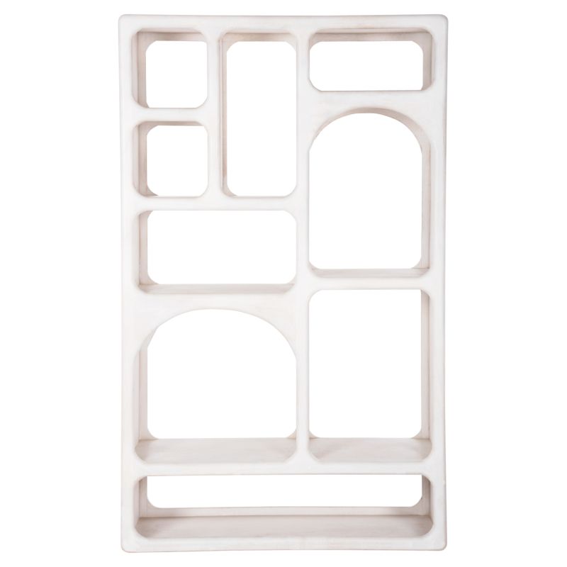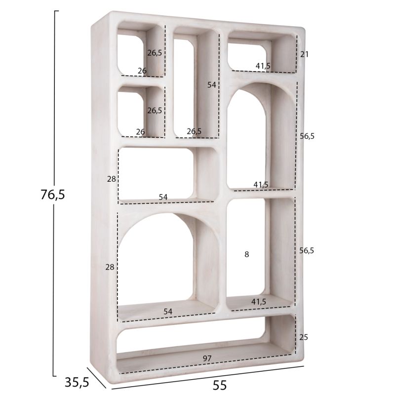 The “HANDYR” bookcase is entirely made of solid mango wood in WHITE color. It has 9 open spaces of various sizes for storing or placing items. This bookcase is elegant and beautiful, and it offers an extra alternative to complete your decoration.