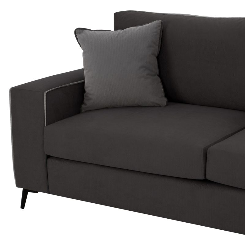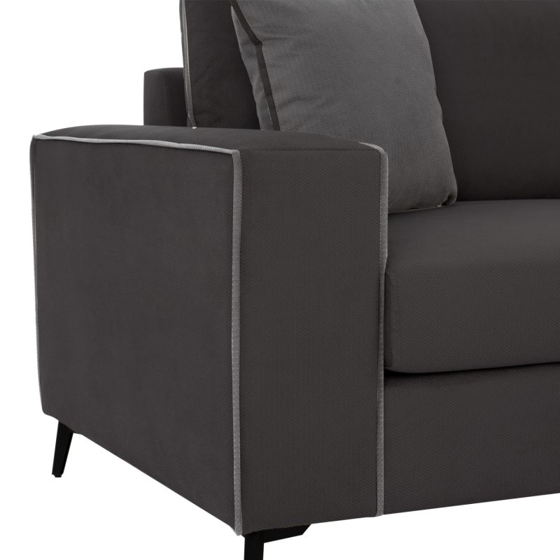 Starting with the basics and the obvious, the color of the textured upholstery of this large sofa is MAKALU 14- grey. It has 5 backrest cushions in the same color and two smaller decorative cushions in MAKALU 12- light gray. The 4 seat cushions combined with the backrest cushions give the perfect sense of comfort! The pleasant aesthetic touch with the distinctive bold seam rail in different color that runs through the edges of the arms, as well as the back cushions and the decorative pillows, completes the two-tone coloring of the sofa in the best way.