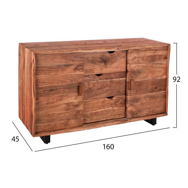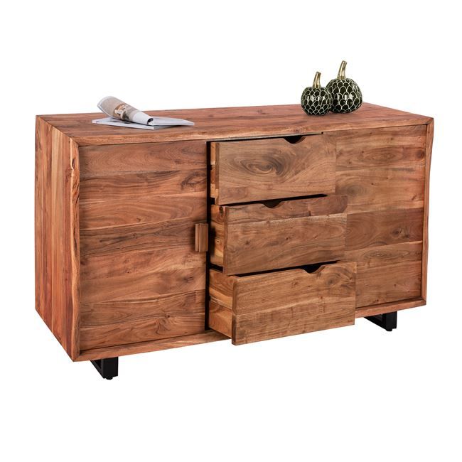 Buffet from acacia solid wood in natural color with metallic legs in black color.