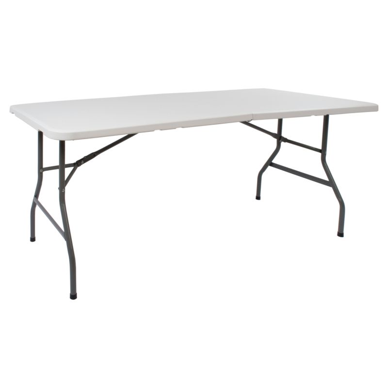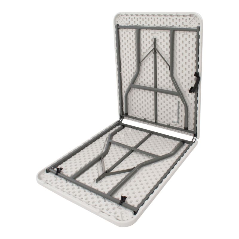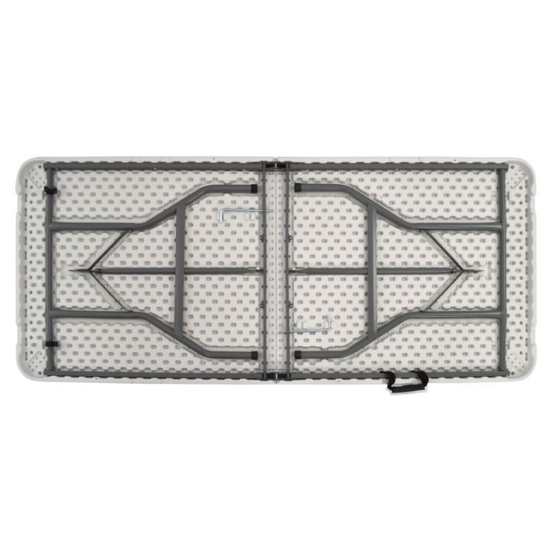 HM5167 is a rectangular table with a WHITE surface and GRAY legs, specially made for catering companies, for conference rooms and in general for anyone who wants one or more tables for large gatherings without the stress of storage since this table is foldable and easy to transport since its design is that of a "suitcase".