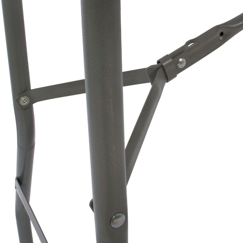 The frame and the legs are metallic, and powder coated. Powder coating is a dry coating process used as a metal finish mostly on industrial equipment. Powder coating is applied as dry powder through an electrostatic process, then cured with heat. It is well known for providing high-quality finishes in terms of both functionality and overall look. The powder coating finishes are not only sturdy but flexible as well. It can be used on different surfaces, including metal, concrete, steel, and plastic. It’s suitable for both indoor and outdoor applications, and it’s one of the most cost-effective finish options.