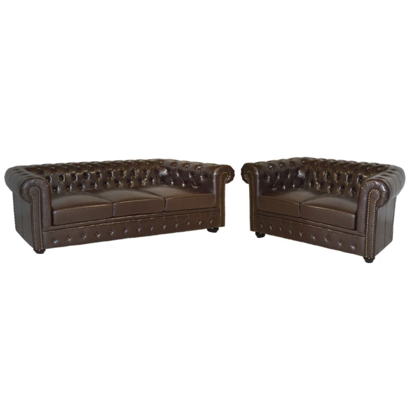 Home Indoor Sofa - Corner sofa ΣΕΤ ΣΑΛΟΝΙ 2/ΘΕΣΙΟ & 3/ΘΕΣΙΟ CHESTERFIELD ΣΚΟΥΡΟ ΚΑΦΕ