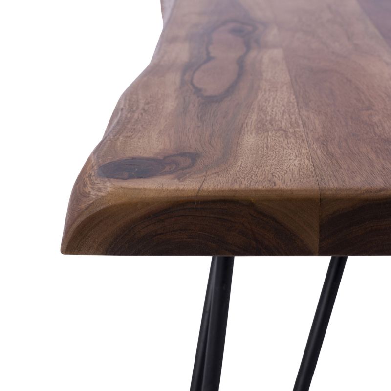 The tabletop is made of natural solid acacia wood and each one is unique due to the unevenness of the tree trunks. When we refer to solid wood, we mean wood made entirely from the trunk of a tree. Solid wood is the most expensive choice in terms of wood but stands out for its timeless aesthetics.