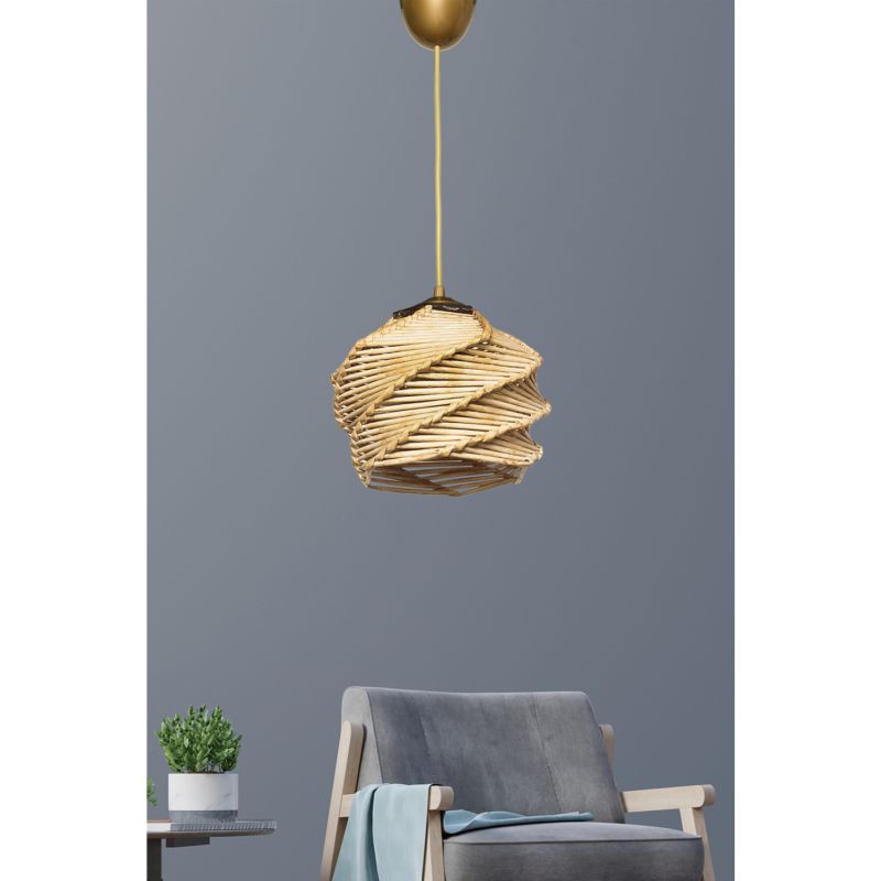 Μοντέρνο κρεμαστό φωτιστικό οροφής,από bamboo υλικό σε φυσική απόχρωση.