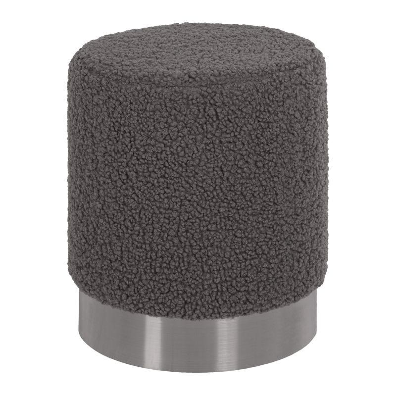LEVY is a cylindrical stool/pouf upholstered with warm boucle fabric in GREY color. The peculiarity of this stool is that instead of legs it rests beautifully on a cylindrical base that comes as a natural continuation of the seat, in silver color. The stool is very elegant and at the same time simple and of great quality. It is certain that anyone who sees it, but especially anyone who uses it, will immediately go into the process of buying the same.