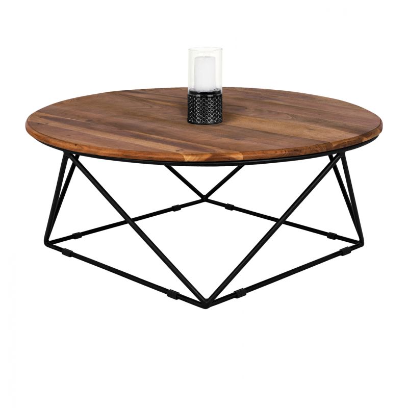 ΗΜ8201.11 is a round short table for the living room, with satisfactory dimensions in a natural wood color. The surface is mounted on the upper ring of the black metal base, which via triangular beams results in a square arrangement. This table will aesthetically upgrade your living room while it can match many different styles and colors in the surrounding space. The existing cracks or those that may be created over time are due to the contraction-expansion of the living organism called solid wood, and are not a manufacturing defect, giving originality and unique design to your space. These are not a product defect.