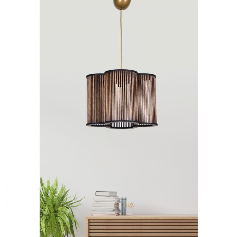 Φωτιστικό οροφής, σε συνδυασμό χρωμάτων, μαύρο, χρυσό και φυσικό bamboo.