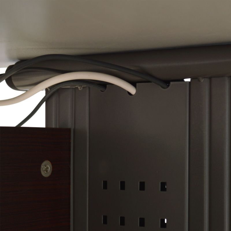 Professional melamine office in wenge color with metallic legs in grey color.