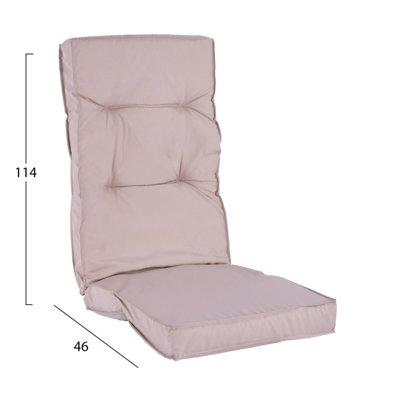 Chair cushion with back 7 cm thick, in beige shade.