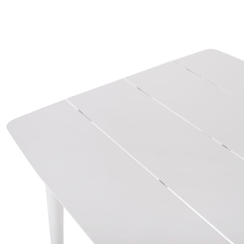 JEROM is a large rectangular outdoor table made entirely of aluminum in WHITE color. The tabletop consists of 4 aluminum plates also in WHITE color, while the 4 legs are cylindrical. It is a table characterized by durability and practicality.
