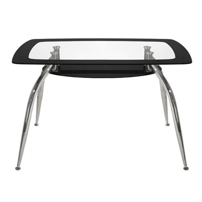 NORRIS is a rectangular table with a modern design. The support frame of the surface that ends on all 4 legs is chrome-plated metal. The curved legs are particularly sturdy while at the bottom they have height adjusters (regulators) for greater flexibility. However, the main feature of this table is that its surface is a single and transparent piece of safety glass with a black opaque frame, which gives the whole table a sense of luxury and purity.