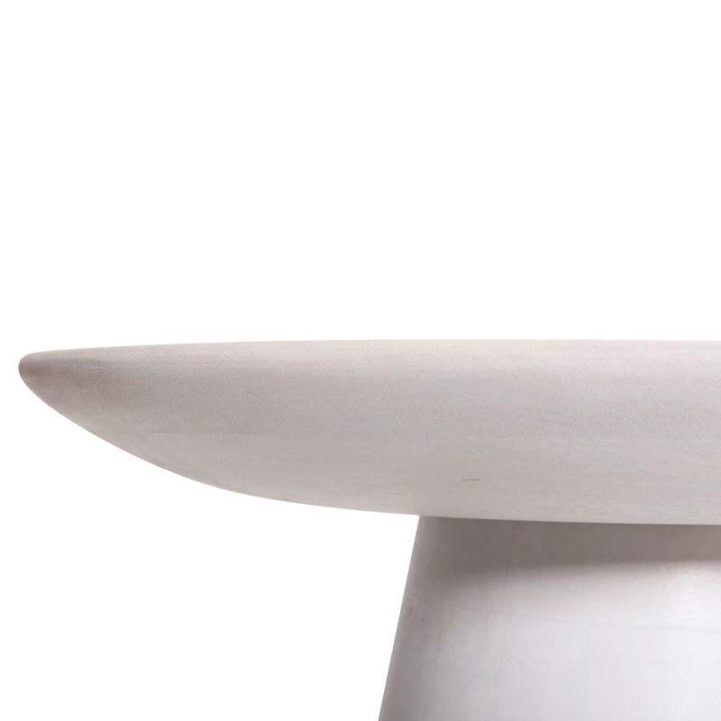 The “ROSS” round side table which is entirely made of solid mango wood in WHITE color has a conical base shape and ends in the round plate-shaped surface. A table that will impress with its shape and practicality.