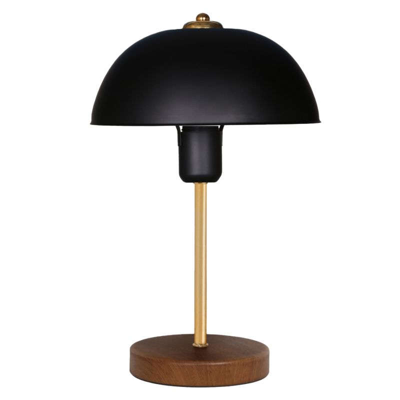 Decorative table lamp with wooden circular base in brown color and mushroom-shaped "cap" in black color. The light is diffused mainly downwards and its reflection on the golden metal pillar of the lamp is pleasing to the eye. These lamps are not ideal for reading and this should always be taken into account when considering buying one. They are purely decorative and their matching with the surrounding space should be harmonious. This lamp is simple, elegant and convenient in dimensions, providing countless possibilities to be "tied" with the rest of your decoration. It is a small work of art.
