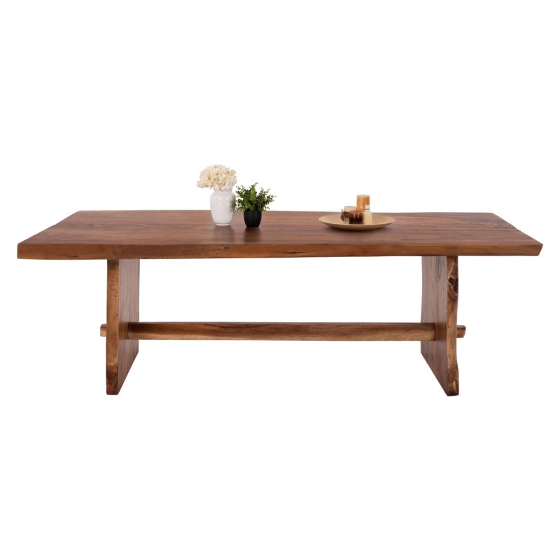 The style of this solid wood table lends a warm and heavy charm to any room. It is also quite versatile and works great with many other styles such as traditional or industrial decor. After all, the feeling of nature works soothingly for most people. The HM9489 table is easy to maintain and the great biological resistance of SUAR wood makes it an ideal choice for a multitude of uses and spaces. If combined with the corresponding decorative pattern, its aesthetic impact will capture everyone's eyes!