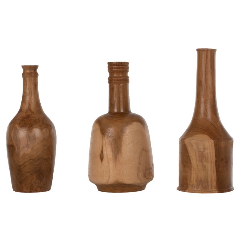 DECOR BOTTLES 3PCS SET HM7717 SOLID TEAK NATURAL