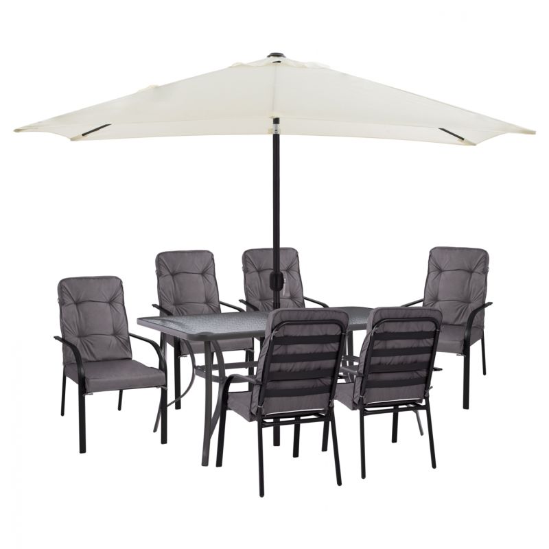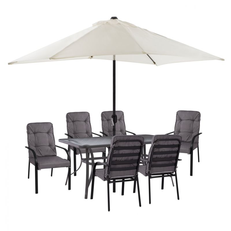 DINING SET 8PCS TABLE, ARMCHAIRS GRAY & UMBRELLA GRAY HM11477
