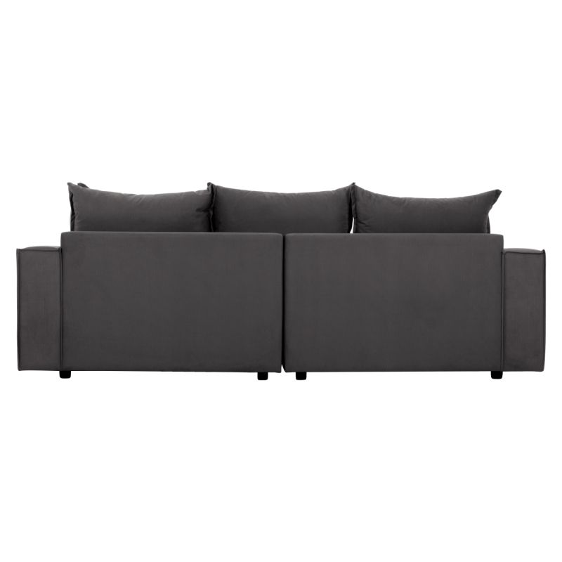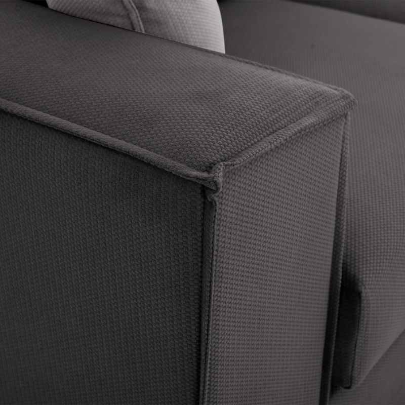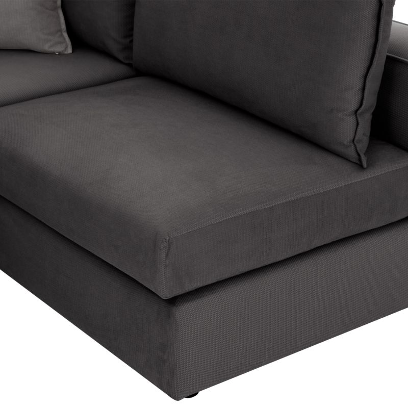 Starting with the basics and the obvious, the sofa textured upholstery is in a MAKALU 14- grey color. It has 5 backrest cushions in the same color and two smaller decorative cushions in MAKALU 12- light grey. The seat cushions combined together with the backrest cushions give the perfect sense of comfort!