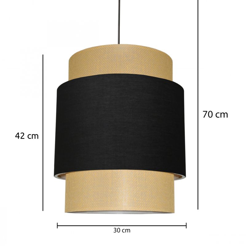ADVANTAGES: The aesthetic superiority of this lamp will make it stand out in your space because it has a simple but artistic look. Its metal frame is perfectly made while the drum has two rings. The outer ring is made of black fabric, while the inner is made of beige fabric. The result is extremely elegant in appearance. It manages to combine an attractive and modern charm with the ideal size, thus adding a beautiful decoration to your ceiling. Its adjustable height can offer different levels of brightness and visual enjoyment. In addition to various rooms in your home, it can also fit in professional places such as restaurants, cafes, hotels, etc. The colors of the lamp and the design capture the eyes, but at the same time special decorative coherence is required to fully highlight its aesthetic virtues.