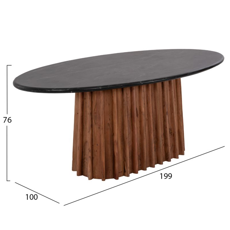 DINING TABLE OVAL DRAXX HM9689 SOLID ACACIA WOOD-BLACK MARBLE TOP 200x100x76Hcm.