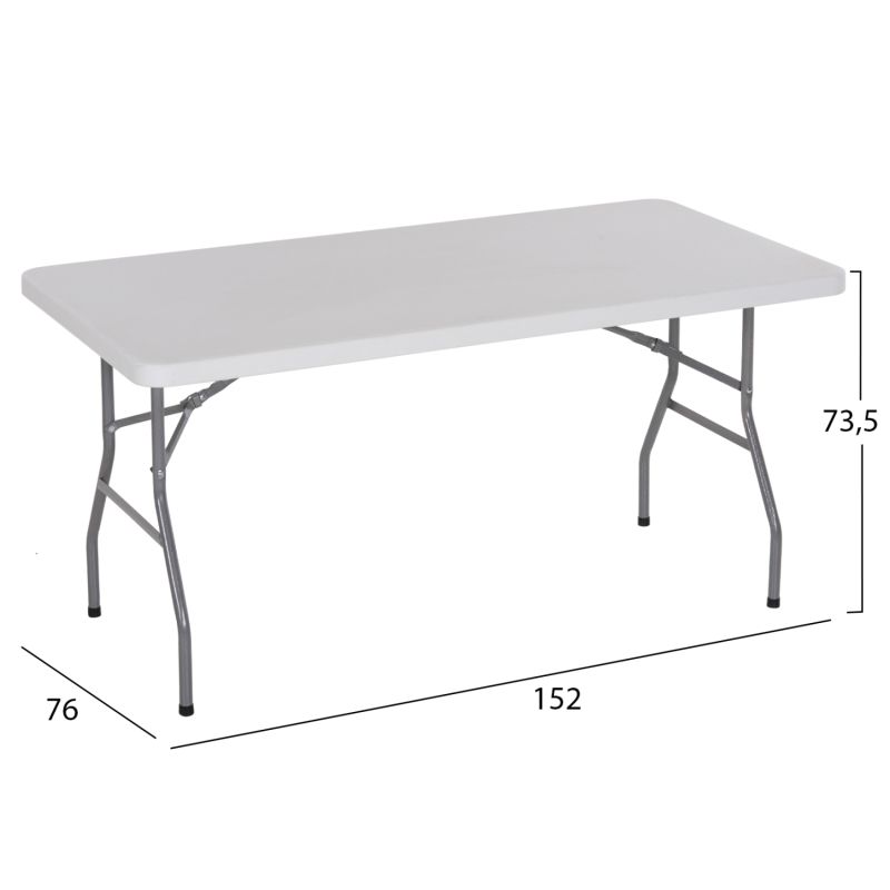 HM5064 is a rectangular table with a one-piece WHITE surface and GRAY legs, specially made for catering companies, for conference rooms and in general for anyone who wants one or more tables for large gatherings without the stress of storage since the legs are foldable, so you can store many of them together, in minimal space. Also, transportation is easy and safe.