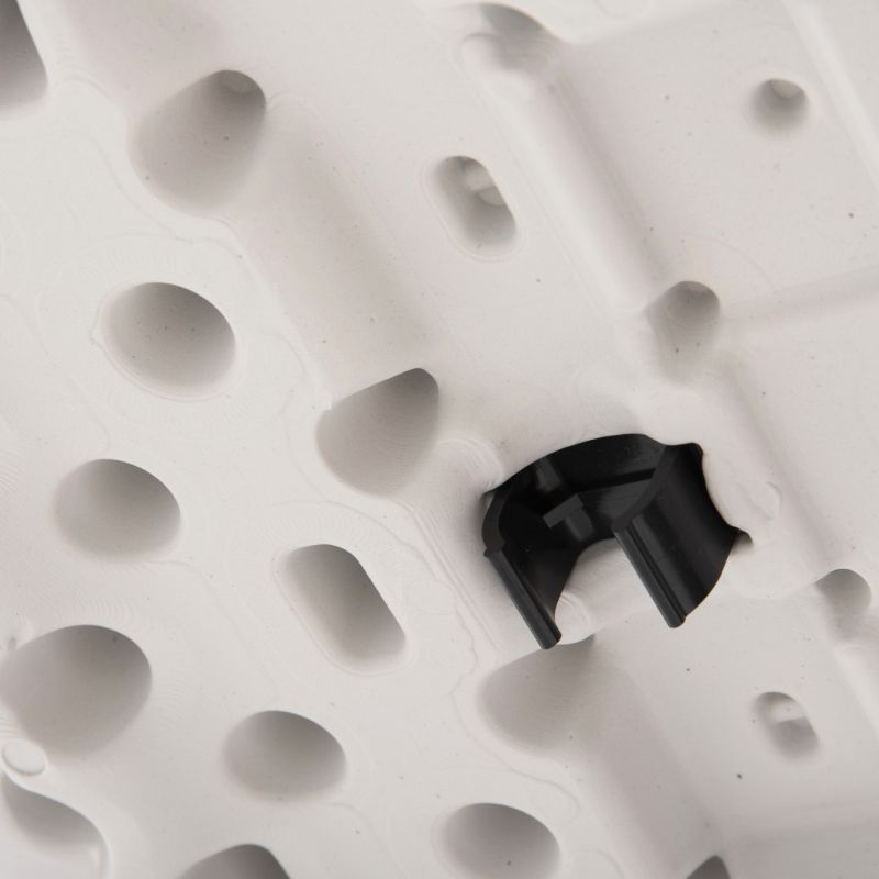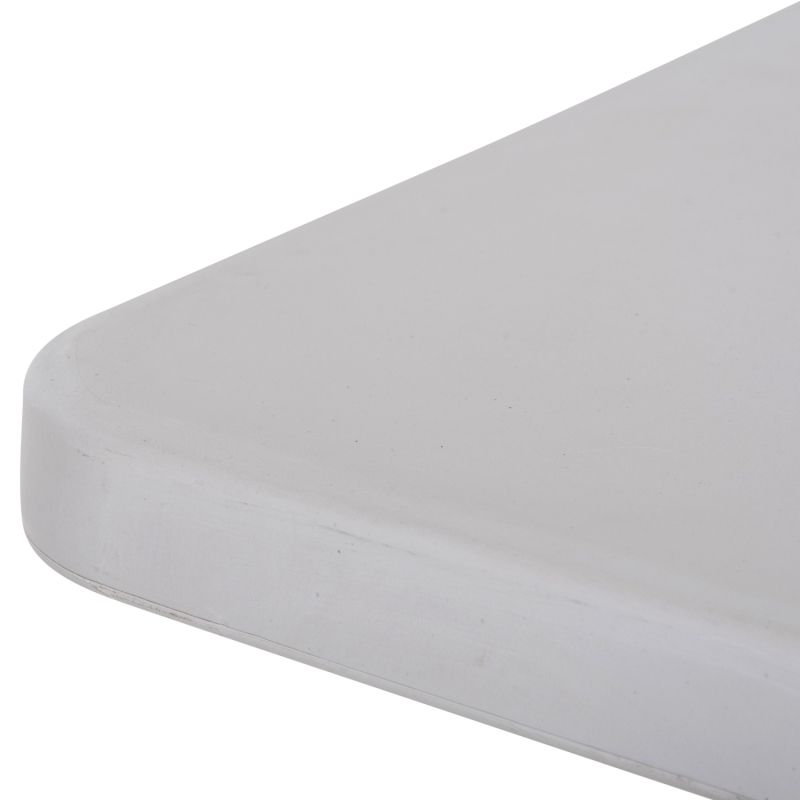 The tabletop is made of primary HDPE (High Density Polyethylene). It is a thermoplastic polymer, which has excellent chemical resistance, meaning it is highly resistant to strong acids or strong bases. It is also a recyclable material and generally lightweight.
