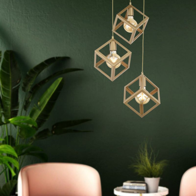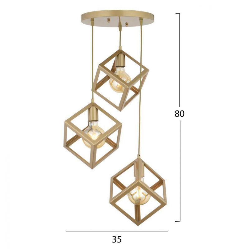 Φωτιστικό οροφής, τρίφωτο, σε χρυσή απόχρωση και σχήμα κύβου.