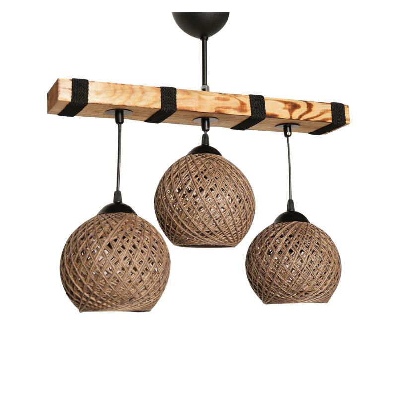 Φωτιστικό οροφής, 3φωτο, σε μπεζ απόχρωση και φυσικό ξύλο.
