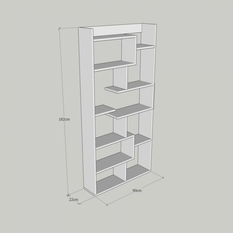 MELAMINE BOOKCASE IN WHITE HM8865.01 90x22x182cm.
