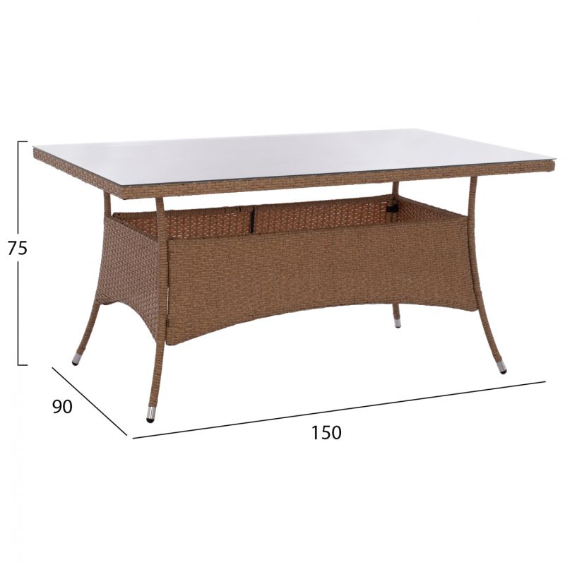 ΣΕΤ ΤΡΑΠΕΖΑΡΙΑΣ 5ΤΜΧ ΤΡΑΠ. 150Χ90 & ΠΟΛΥΘΡΟΝΕΣ WICKER RATTAN ΜΠΕΖ ΚΑΦΕ HM11714.02