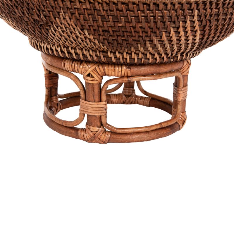 The bowl is made of Ketak wickerwork. Ketak is a word that describes a species of wild jungle grass that grows along the perimeters of forested areas mainly of Indonesia but also in the S.E. Asia, and it is a kind of fern and looks a lot like Rattan. However, the Ketak wicker has a harder and stronger texture.