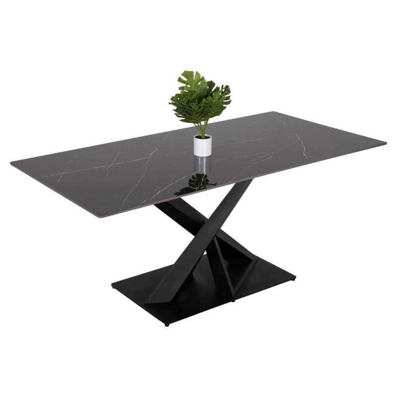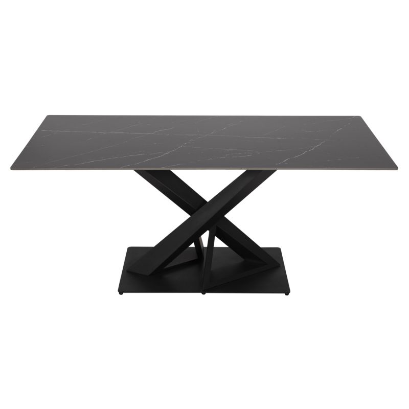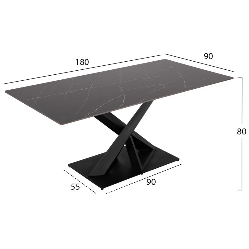 DINING TABLE RECTANGULAR RUBBY HM9849.02 CERAMIC TOP IN BLACK MARBLE-BLACK METAL BASE 180x90x77Hcm.