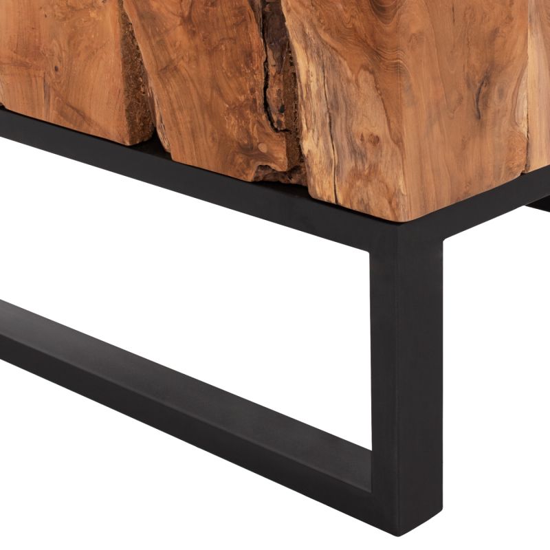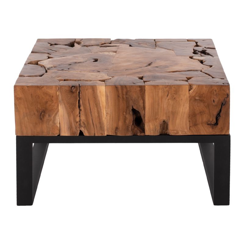 ΗΜ9354 is a square short table for the living room, with satisfactory dimensions in a natural wood color. The table rests on a BLACK metal base. This table will aesthetically upgrade your living room while it can match many different styles and colors in the surrounding space. It consists of several different pieces of solid wood joined together to form its square shape. The existing cracks or those that may be created over time are due to the contraction-expansion of the living organism called solid wood, and are not a manufacturing defect, giving originality and unique design to your space. These are not a product defect.